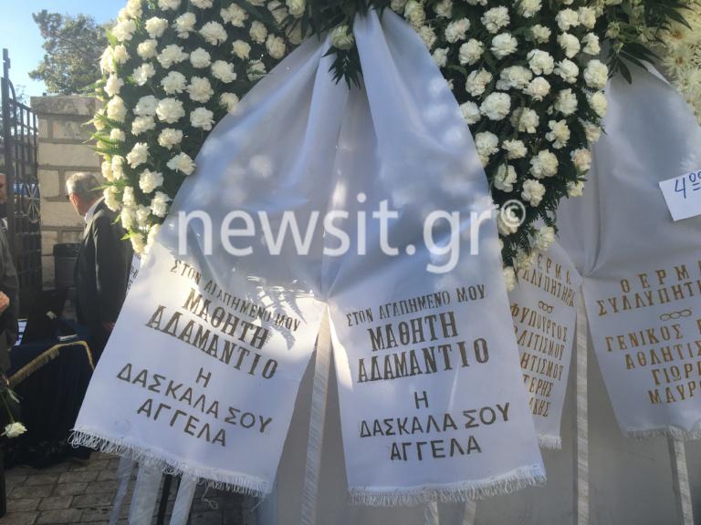 Στο πλευρό της βρισκόταν και όλοι οι φίλοι του Αδαμάντιου Μαντή, με τους συμμαθητές του να παρευρίσκονται φορώντας λευκά πουκάμισα προς τιμήν του.