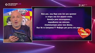 Από τη δική του πλευρά ο Νίκος Μουτσινάς προσπαθούσε να δικαιολογηθεί εξηγώντας της πόσο πολύ τη θαυμάζει και την εκτιμά με τα λόγια του ωστόσο να μην πιάνουν τόπο. Όλο αυτό κράτησε περίπου τρία λεπτά με τον παρουσιαστή να δείχνει να τα έχει χαμένα.