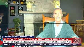 Ο κ. Ρόκκος εμφανίστηκε στην εκπομπή Live News προκειμένου να προωθήσει την αυριανή εκπομπή Σπίτι με το Mega που θα είναι αφιερωμένο στο καλλιτεχνικό του έργο.