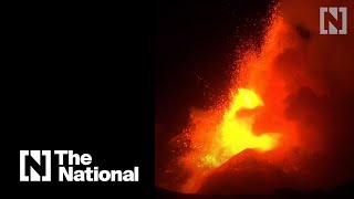 A few moments of the second short episode of Strombolian activity culminating in lava fountaining at #Etna's Southeast Crater during the night of 13-14 December 2020. pic.twitter.com/XjVNdvIjJT