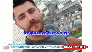 Ο Νίκος Μπάρτζης είναι 26 ετών και μένει στο Ζευγολατιό Κορινθίας με τους γονείς του και τον μικρότερο αδερφό του.