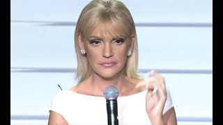 Η δημοσιογράφος εμφανίστηκε στη σκηνή φορώντας μια αποκαλυπτική δημιουργία της Σήλιας Κριθαριώτη και μόλις τελείωσε με την ερμηνεία της άρχισε τους διαλόγους με τους κριτές.
