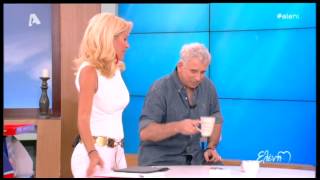 Τότε η Ελένη Μενεγάκη θέλησε να τον βάλει νωρίτερα στην παρέα της εκπομπής για να πει τη γνώμη του για την εμφάνιση της Εθνικής Ελλάδος, στο Μουντιάλ, στη Βραζιλία. «Θα καθίσω όπως εσύ σε μια εκπομπή», της είπε ο ηθοποιός κάνοντας αναφορά στην αρκετά σeξι στάση που κάθεται ενίοτε η παρουσιάστρια. Εκείνη γέλασε και του εξήγησε το λόγο που στέκεται έτσι με τον Πέτρο Φιλιππίδη να της λέει: «Να πιάσω λίγο» και την Ελένη Μενεγάκη να ξαφνιάζεται.