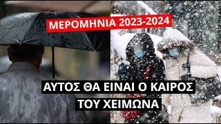Ο Νοέμβριος με πολλές αλλαγές και προς το τέλος του βροχές σε Κυκλάδες, Κρήτη, Δωδεκάνησα, Νότιο Αιγαίο. Μετά τις 10 Δεκεμβρίου αρχίζει ως τις 12 Ιανουαρίου χειμώνας με όλα τα φαινόμενα: χιόνια, πολύ κρύο και βροχές, από δυτικά και βορειοδυτικά. Χριστούγεννα, Πρωτοχρονιά και Φώτα με δυσκολίες του καιρού καθημερινά, σχεδόν ως τις 8 με 10 Ιανουαρίου 2024.