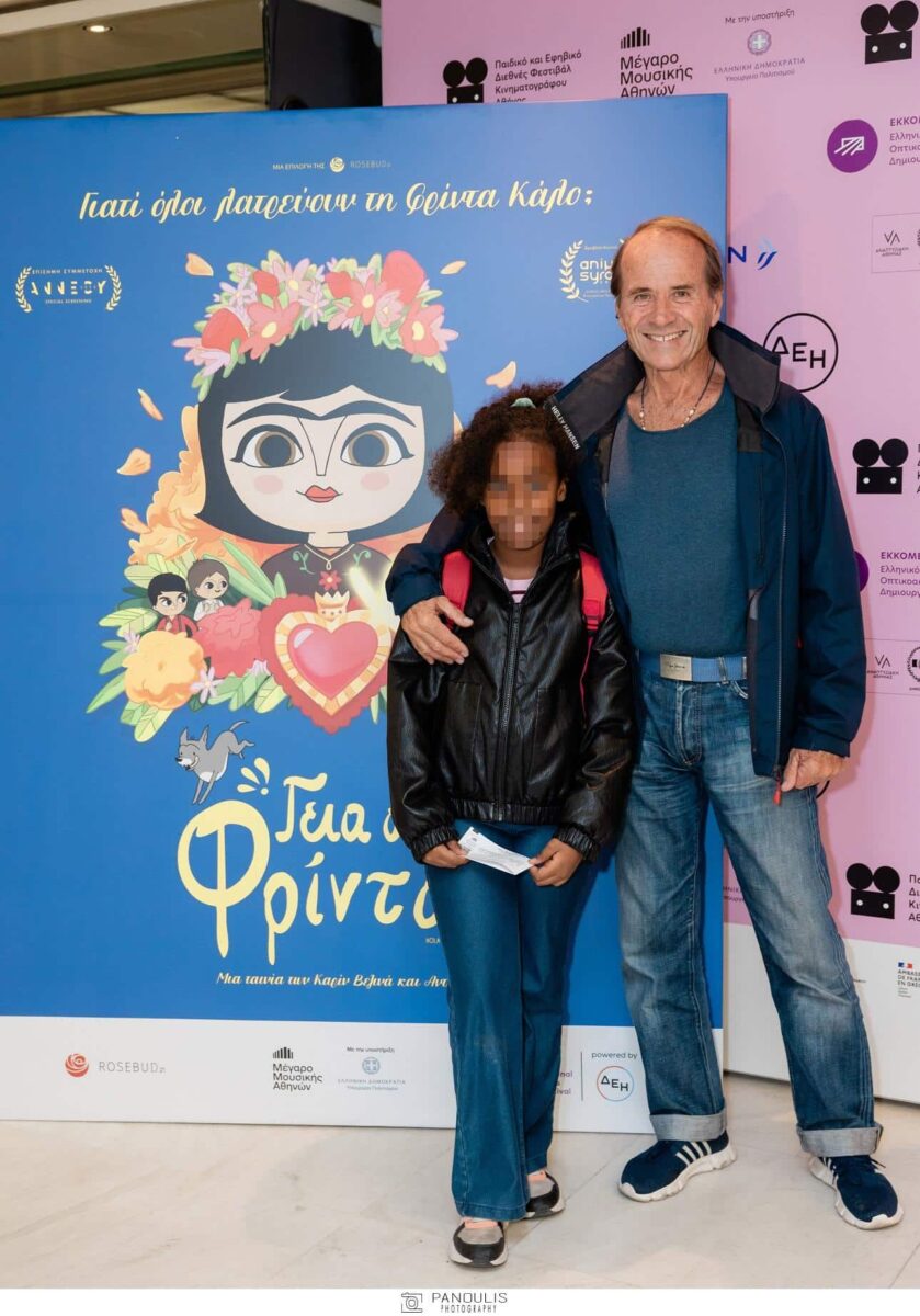 Ο Ντίνος Αυγουστίδης έκανε μια σπάνια εμφάνιση με την οκτάχρονη κόρη του, Αλκυόνη, στην πρεμιέρα της ταινίας «Γεια σου Φρίντα».