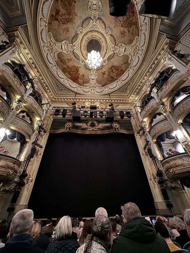 Οι θέσεις στα τέσσερα επίπεδα του Wyndham’s Theatre γεμίζουν μέσα σε λίγα λεπτά για ακόμη ένα sold out, οι ταξιθέτριες ενημερώνουν πως η φωτογράφιση και η βιντεοσκόπηση απαγορεύονται, οι πόρτες κλείνουν και τα φώτα σβήνουν.