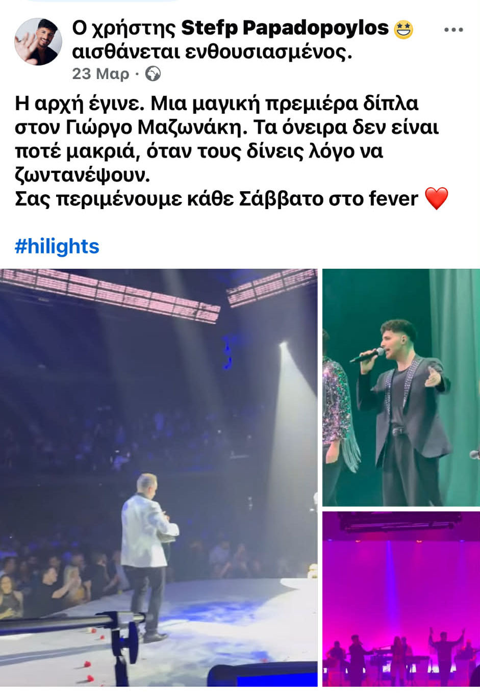 Σε μία έρευνα που κάναμε διαπιστώσαμε πως ο 22χρονος τραγουδιστής στα social media έκανε αναρτήσεις για τη συνεργασία του με τον Γιώργο Μαζωνάκη, δείχνοντας υπέρμετρο ενθουσιασμό και μιλώντας για ένα «όνειρο που παίρνει σάρκα και οστά».