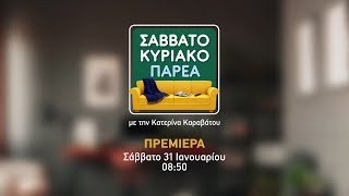 Από το Σάββατο 31 Ιανουαρίου, και κάθε Σαββατοκύριακο στις 08:50, η αυθεντικά επικοινωνιακή Κατερίνα Καραβάτου και το Σαββατοκύριακο Παρέα έρχονται με όλα τα highlights της εβδομάδας, αλλά και όλα αυτά που θα γίνουν το απόλυτο talk of the week.