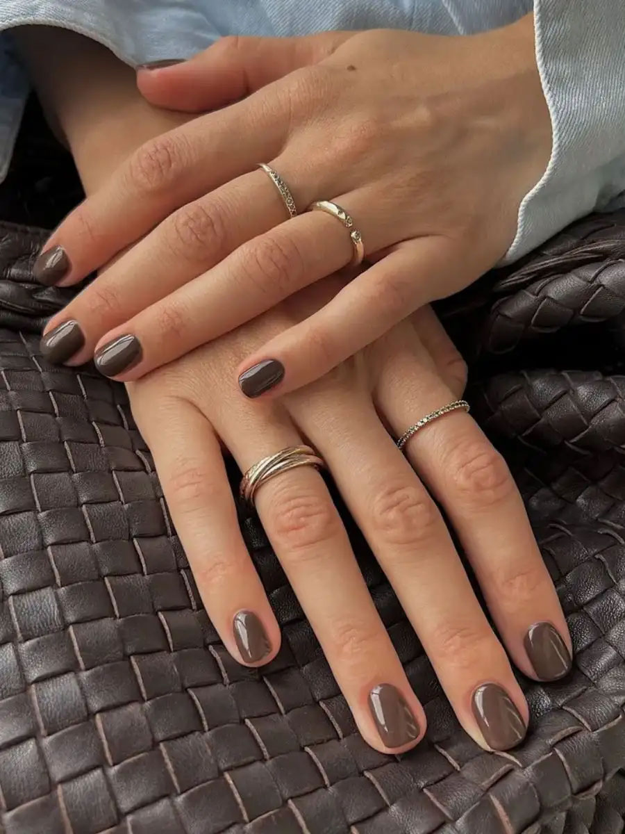 Το βαθύ καφέ που θυμίζει λιωμένη σοκολάτα παραμένει διαχρονικά κομψό. Προσφέρει ζεστασιά και βάθος στα νύχια και αποτελεί μια sophisticated επιλογή που δεν περιορίζεται μόνο στους φθινοπωρινούς μήνες.