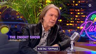 Απόψε, Δευτέρα 27 Απριλίουστις 24:00 ο Γρηγόρης Αρναούτογλουυποδέχεταιστο «The 2Night Show»τον Κώστα Τουρνά σε μία κατάθεση ψυχής που καλύπτει 55 χρόνια έντονης καλλιτεχνικής διαδρομής. Ο σπουδαίος δημιουργός εξομολογείται πως η μουσική ήταν πάντα η ανάγκη του να εκφράσει όσα τον διακατέχουν για να μην «σκάσει», δουλεύοντας πάντα με καθαρό μυαλό μακριά από καταχρήσεις. Πώς γράφτηκε το «Άνθρωπε Αγάπα» και γιατί ο ίδιος το θεωρεί μια απλή ευχή και όχι συμβουλή; Γιατί ο Γιώργος Μαρίνος τον θεωρούσε «εξομολογητή» του και από ποια συγκλονιστική στιγμή του σόουμαν με τη μητέρα του εμπνεύστηκε τον «Αχιλλέα από το Κάιρο»; Ποιο ήταν το ψευδώνυμό του και ποιες λαϊκές επιτυχίες έγραψε για τη Ρίτα Σακελλαρίου και τη Δούκισσα; Τι δυσκολίες πέρασε στην επαγγελματική του πορεία; Τι τον έκανε να πάψει να «φουντώνει» εύκολα και να είναι πιο χαλαρός; Γιατί ανατριχιάζει κάθε φορά που ακούει τον κόσμο να τραγουδάει μαζί του; Πόσο βαθιά ήταν η απώλεια του Ρόμπερτ Ουίλιαμς, που ήταν για εκείνον κάτι παραπάνω από αδερφός; Ο Κώστας Τουρνάς συγκινεί μιλώντας για τη γυναίκα του, Μαρία, με την οποία είναι μαζί πάνω από 50 χρόνια, περιγράφοντάς την ως το απόλυτο «καταφύγιο» και το «άλλο του μισό» από την εποχή που ήταν ακόμη φαντάρος. Τέλος, μιλάει για τη βιογραφία του «Άνθρωπε Αγάπα» από τον Θάνο Κανούση, που κυκλοφορεί στα βιβλιοπωλεία, αλλά και για τη συναυλία του με τον Διονύση Τσακνή στο «World of Beer Festival», στις 10 Μαΐου στην Τεχνόπολη.